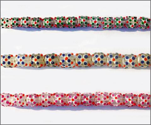 Our handmade lac beads are decorated with seed beads, mirrors, glitters, metal rings, and colorful embellishments, creating a vibrant look. Available in hundreds of designs, lac beads are ideal for traditional costume jewelry and usually feature a larger 3mm hole.